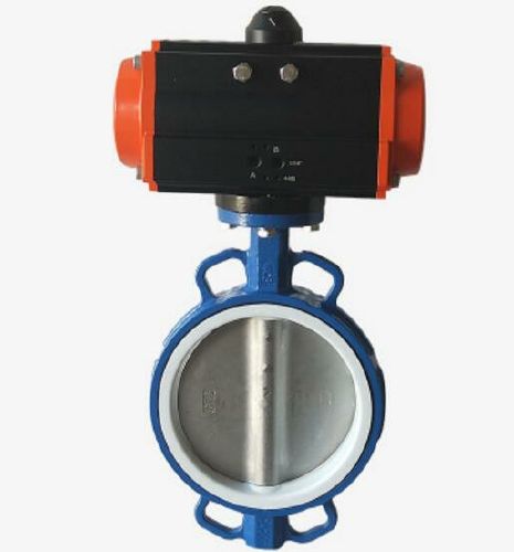 氣動(dòng)對(duì)夾球墨鑄鐵蝶閥,選用單作用或雙作用氣動(dòng)執(zhí)行器。小口徑閥用齒輪齒條活塞氣動(dòng),大口徑閥,用撥叉式活塞氣動(dòng)。根據(jù)有無(wú)彈簧復(fù)位,可選擇:雙作用式(無(wú)彈簧)和單作用式(有彈簧)兩種。
